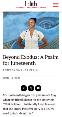 Featured in Lilith Magazine as "Black Jewish Women Artists you should know," my art, ritual-leading, teaching/facilitation work has been featured at LAB/Shul, the Spirit of Humanity Festival, NCORE (National Conference on Race and Ethnicity in Higher Education), The Braid Theater, Drexel University, Kripalu Retreat Center, Jewish Voice for Peace, Project Shema, Reboot, Jewish Theological Seminary, The Make Good Project, in schools, Shuls, theaters, and many other hubs for arts, culture, and social change.
